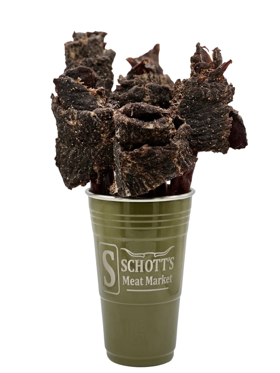 Get that special someone a bouquet they can really enjoy! Each rose is made with our delicious jerky for the pedals and snack sticks for the stems. Comes with six roses and your choice of a Schott’s Meat Market engraved Wyld Gear Wyld Cup or Multi-Can. Perfect for any occasion.